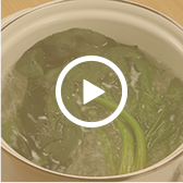 青菜類の場合:火の通りにくい根元から、ふたをしないでゆでましょう。