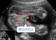 真ん中の突起が、男の子のペニスです。(妊娠23週)